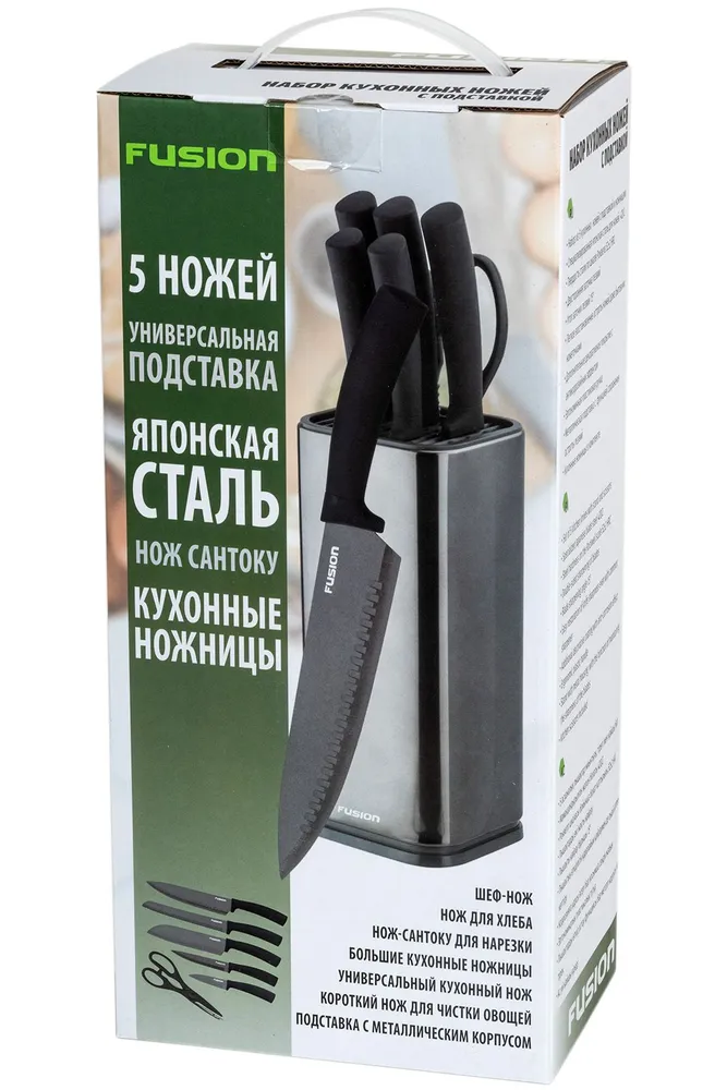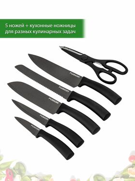 Многофункциональный комплект и 5 кухонных ножей и ножниц. Возможности этого набора охватывают весь необходимый на кухне спектр действий. Они позволяют без проблем работать практически с любыми продуктами.