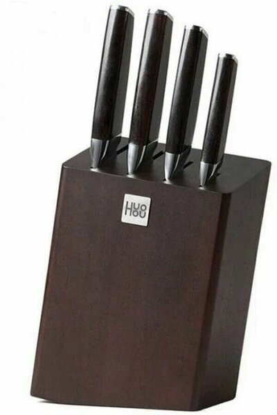 Угол наклона подставки для набора HuoHou подобран специально для удобного доступа и размещения ножей. Подставка сделана из дерева со специальным покрытием, которое не дает со временем набухнуть дереву и испортится под воздействием влаги.