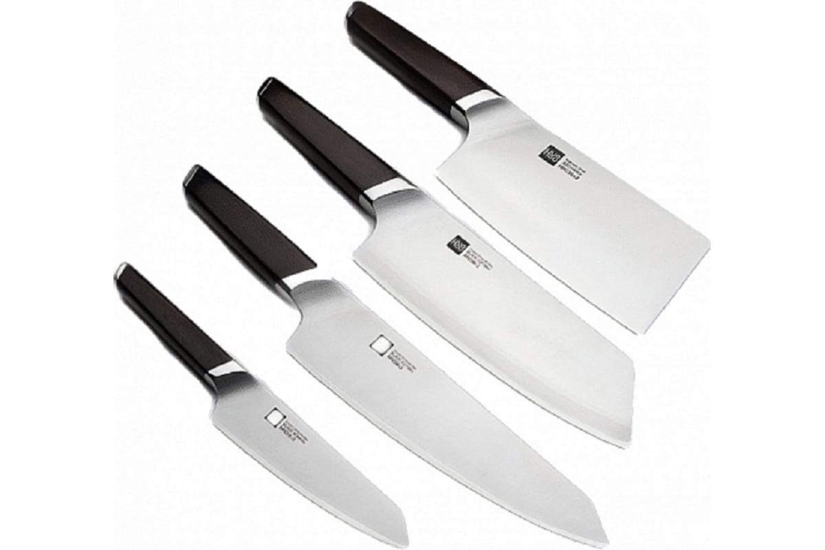 Набор ножей HuoHou Composite Steel Knife Set из композитной стали 5 шт HU0033 включает нож-тесак (топорик) - легко разрубит кости, нарежет мясо; поварской нож - для мяса, рыбы, овощей; разделочный - мясо без костей, рыба, овощи; универсальный нож - для чистки фруктов, легкой нарезки, фигурной резки.