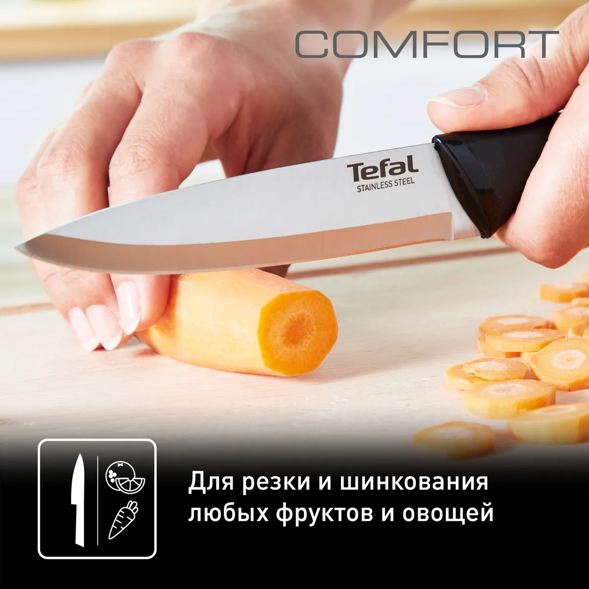 Универсальный нож 12 см, поварской нож 15 см, нож для очистки 9 см.