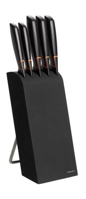 Набор ножей в блоке Fiskars 5шт. Edge 1003099 необходим для кухни. Каждый нож имеет твердость стали 53 по шкале Роквела.
