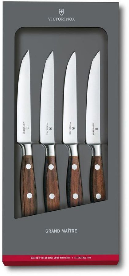 Нож Grand Maitre Steak Knife из серии кованых ножей Victorinox, сочетающий красивую форму с высокой функциональностью, равномерно закаленное и идеально сбалансированное.