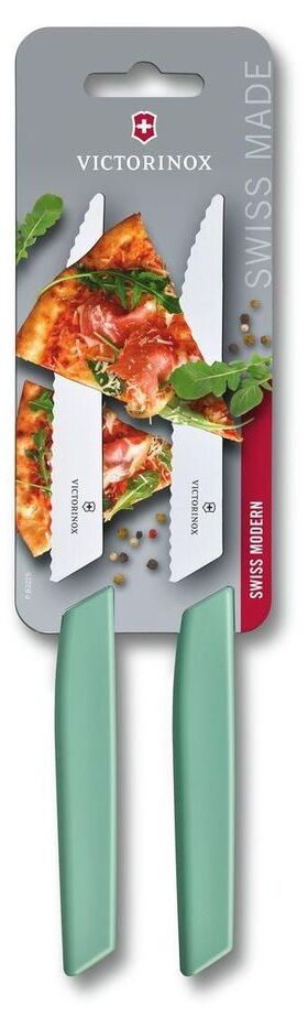 Если вам нужно острое лезвие, которое скользит по мясу, и удобная ручка для легкой нарезки, обратите внимание на набор швейцарских современных ножей для стейка, состоящий из 2 предметов.