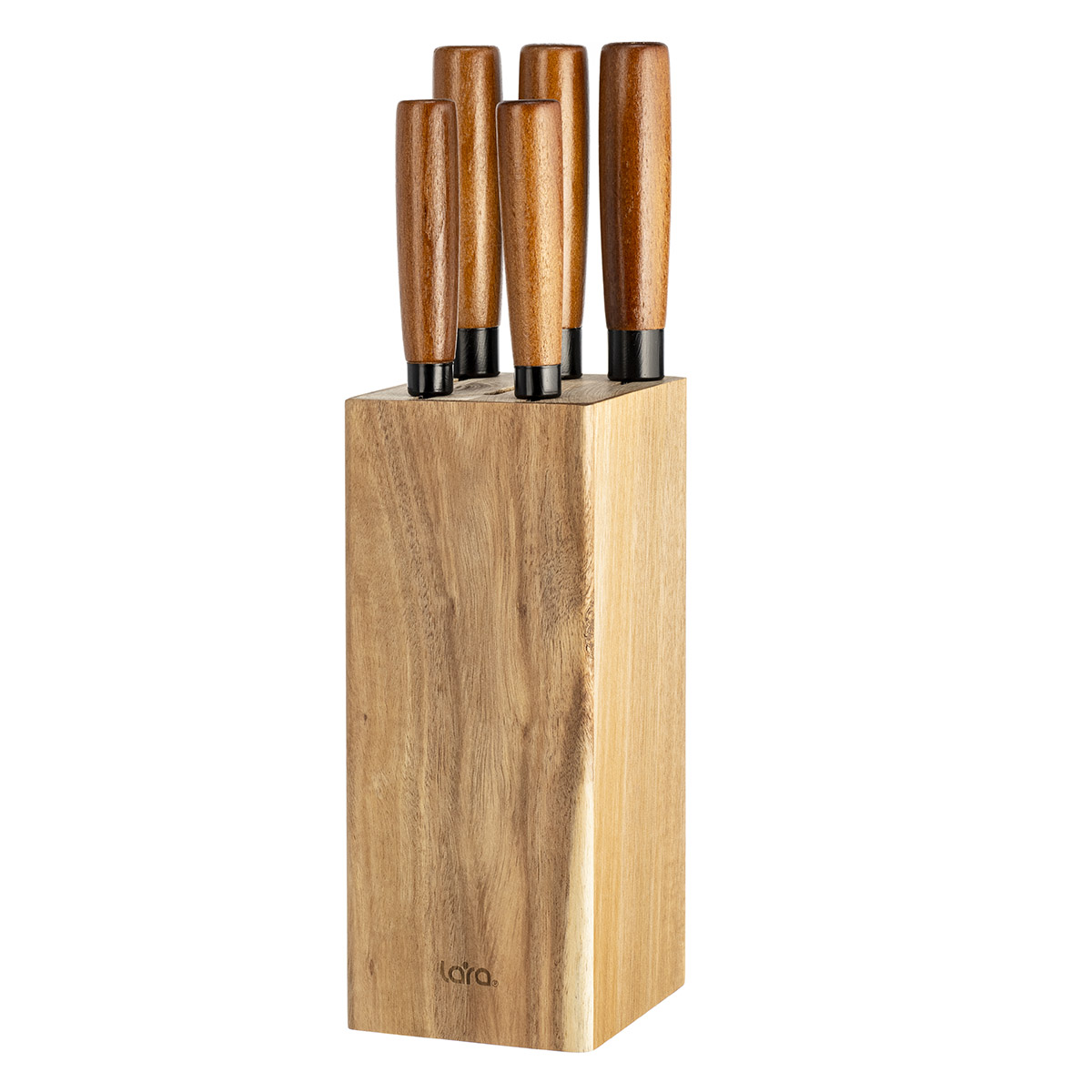 Набор кухонных инструментов LARA займет достойное место на вашей кухне. В набор входят пять качественных ножей: для овощей, для хлеба, универсальный, сантоку и топорик для рубки или шинковки.