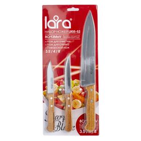 Набор ножей LARA включает в себя три вида ножей: поварской, для стейка и для очистки.