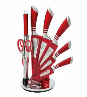 Аксессуары в наборе ножей: Кухонный топорик, Ножницы, Подставка, Точилка для ножей, Овощечистка