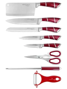 Этот набор посуды включает в себя различные ножи, которые пригодятся вам для приготовления пищи. Ножи изготовлены из высококачественной нержавеющей стали, что обеспечивает их долговечность и сохранение остроты лезвия на длительный срок.