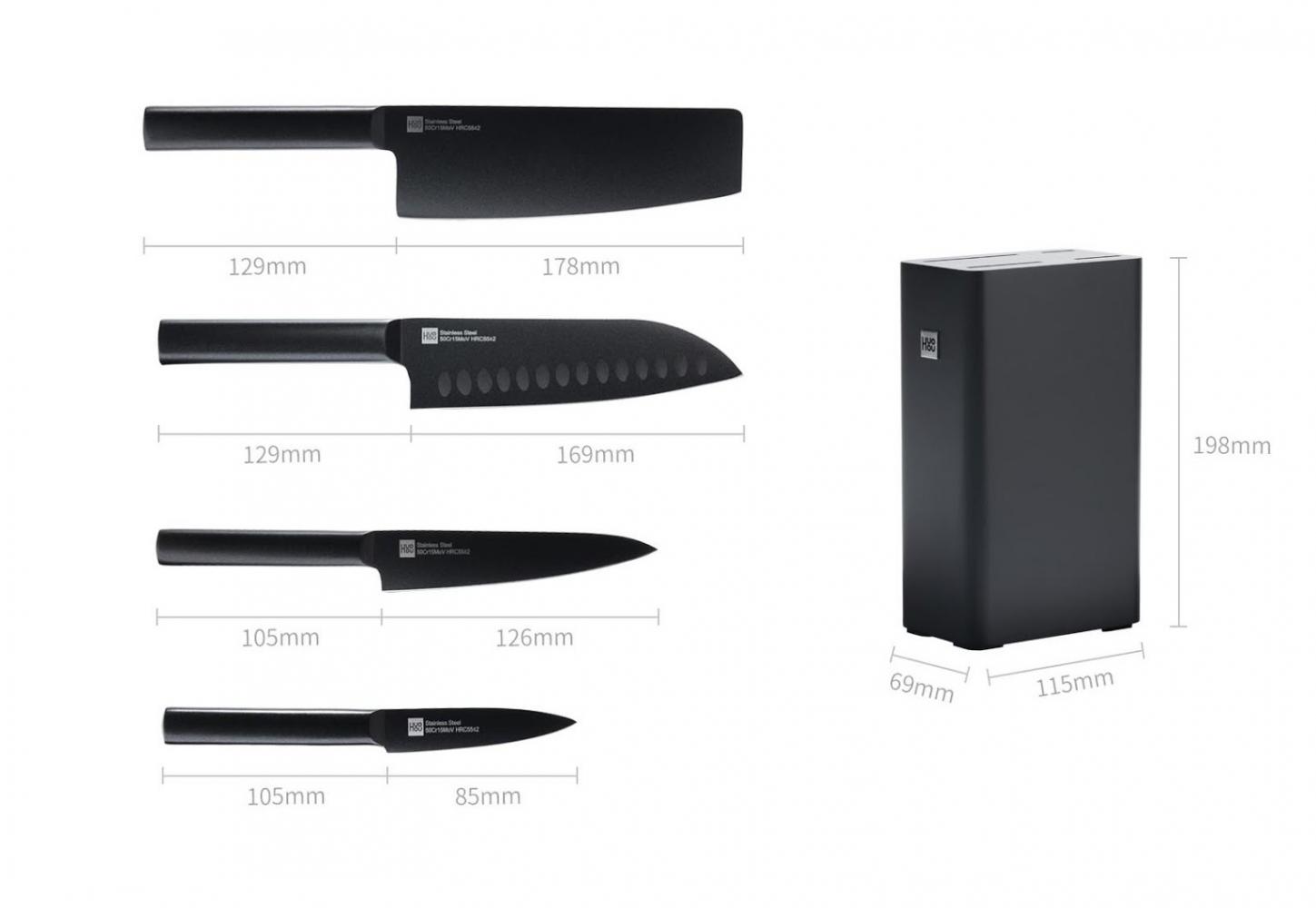 Набор ножей сталь X50 Cr Mo V 15 Huo Hou Heat Cool Black Non-stick Knife Set (4 ножа + подставка)