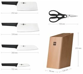 Набор кухонных ножей с подставкой HuoHou HU0058 Black RUS – это 4 готовых к использованию заточенных ножа и удобные ножницы с дополнительными функциями. Все эти элементы не боятся ржавчины и повреждений. Кухонные ножи HuoHou позволят вам готовить еду с комфортом и экономить время. Самое основное преимущество, которым обладает набор кухонных ножей HuoHou 6 HU0058 Black RUS – высокоуглеродистая сталь и нетоксичный пластик, из которых сделаны все его элементы. Набор ножей с подставкой можно мыть водой как вручную, так и в посудомоечной машине, они готовы к постоянной работе и не боятся царапин, что позволяет сохранить внешний вид при хранении с другими приборами. Каждый нож из набора — это инструмент повара, который подойдет для быстрого измельчения и нарезки любых продуктов, а топорик справится также и с костями. Набор столовых ножей HU0058 имеет в своём арсенале элементы для решения большинства повседневных задач. HU0058 состоит из таких предметов, как кухонный слайсер для мяса, хлеба и прочих продуктов, нож-сантоку, маленький нож для чистки овощей и фруктов, нож для рубки мяса Ножницы универсальные стальные также входят в комплект для более мелкой работы. Все ножи кухонные из нержавеющей стали в составе HU0058 универсальны, кроме этого, набор сэкономит вам средства на покупку кухонных аксессуаров. Например, входящие в набор ножницы универсальные не только для нарезки, но также могут открывать бутылки и колоть орехи. Приятный дизайн и подставка из экологичного материала – вот то, что делает данный набор «своим» на любой кухне. Нож с черной ручкой – это классика, которая подойдет к любому интерьеру, а высококристаллический пропилен, использованный в рукоятках, делает ножи и ножницы удобными и нетоксичными. Комплект ножей с подставкой HU0058 не требует особых условий для хранения, все предметы из его состава могут быть всегда у вас под рукой, благодаря тому, что собраны в одном месте. Подставка с ножами всегда также неприхотлива, так как прошла специальную обработку, предотвращающую появление плесени и растрескиваний. Обратите ваше внимание при поиске ножей, что, поварской комплект HuoHou из нашего магазина является оригинальным товаром, прошедшим сертификацию. Русская версия товара подразумевает отсутствие иероглифов и наличие понятного описания. Подарочный набор ножей для любителя осваивать рецепты станет хорошим выбором среди прочих.