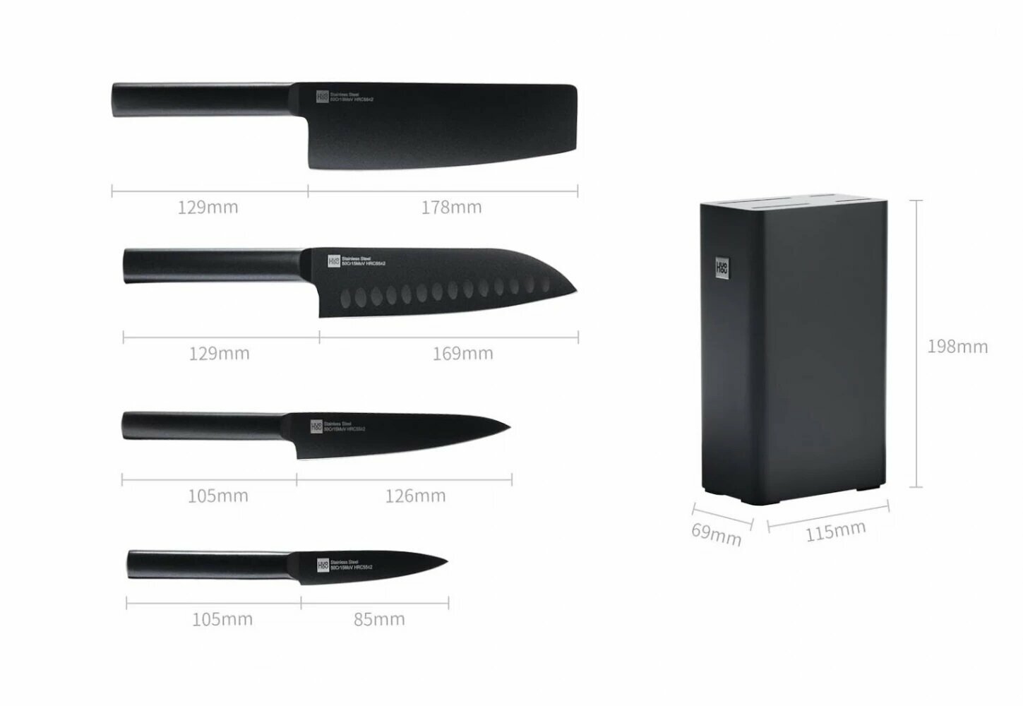 Набор ножей HuoHou Non-Stick Kitchenl Knives Set 5 шт HU0076 - это универсальный набор для кухни для самых разных продуктов. В набор входят 4 ножа из прочной стали 50Cr15MoV: нож для мяса, нож сантоку, универсальный нож и нож для овощей. В набор также входит компактная и стильная подставка.