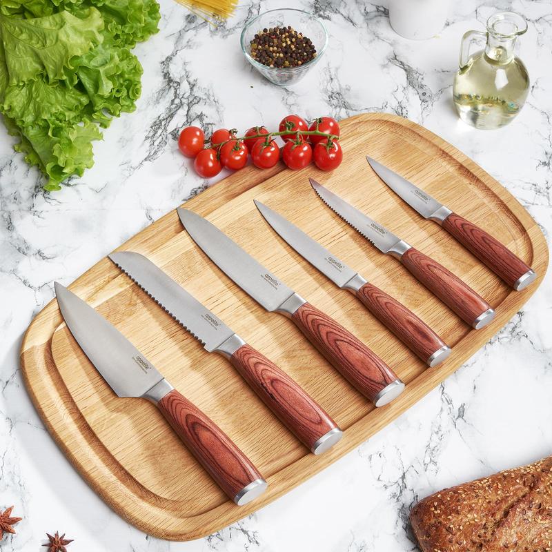 Эргономическая рукоятка удобно ложится в руке, не скользит и обеспечивает комфортное использование прибора. Рукоятка ножа выполнена из дерева.