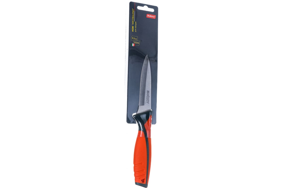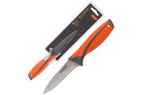 Нож с прорезиненной рукояткой предназначен для эксплуатации в быту, на кухне, а также в местах общественного питания.