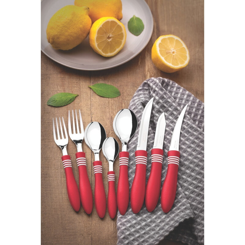 Нож для стейка. Лезвие нержавеющая сталь AISI 420 (ножи) Толщина 1-1,5 мм. 3 насечки около лезвия для безопасности пользователя. Рукоятка из полипропилена с деталями из резины для безопасности. Упаковка: фирменный картонный