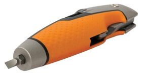 встроена открывалка для банок с краской; присутствует отвертка; специальное покрытие лезвия CarbonMax; рукоятка со структурным покрытием SoftGrip; вес 190 г.