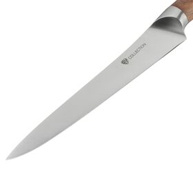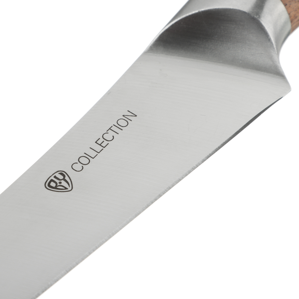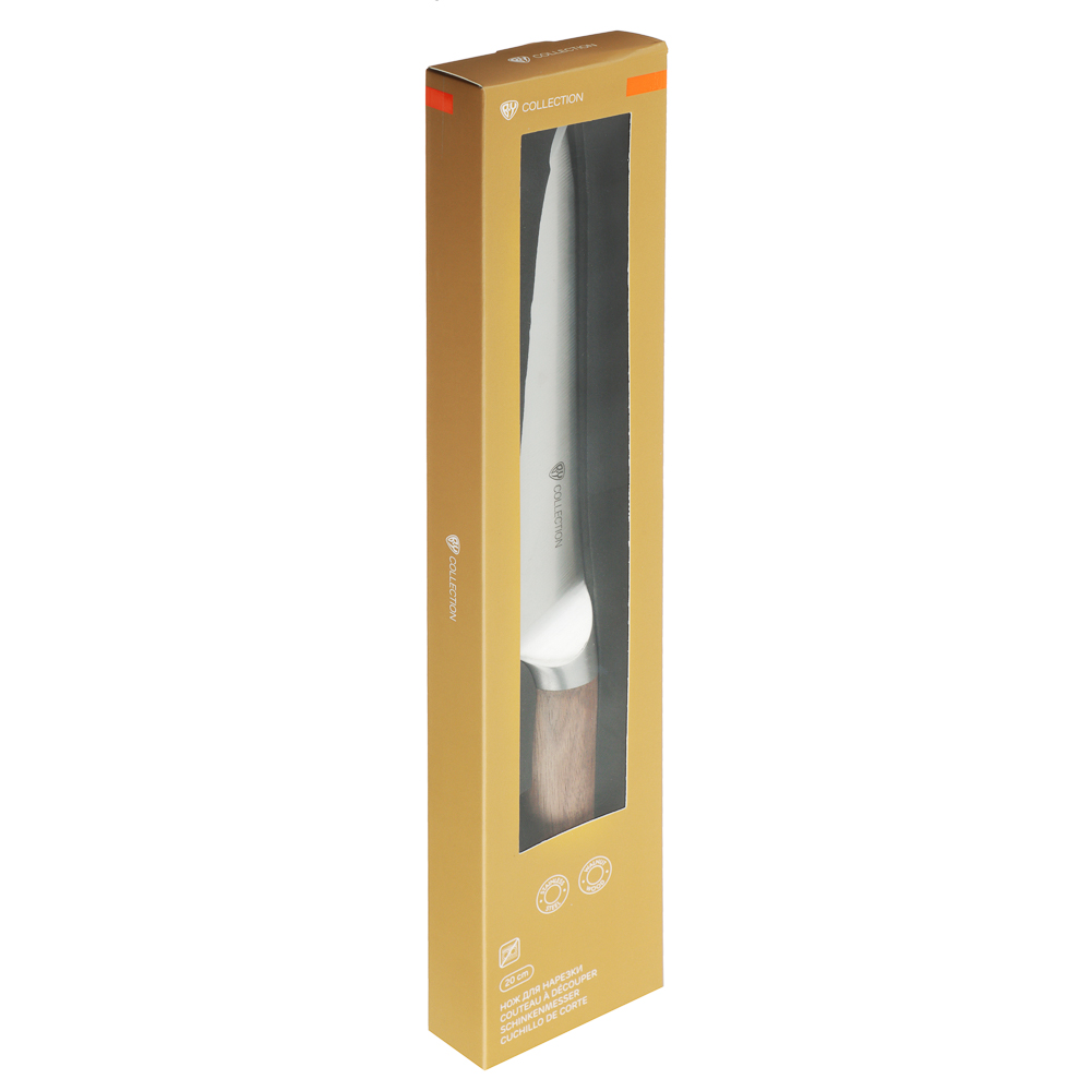 Нож кухонный универсальный кованый подходит для нарезки фруктов и овощей, разделки и нарезки рыбы и мясных деликатесов, сыров и других продуктов.