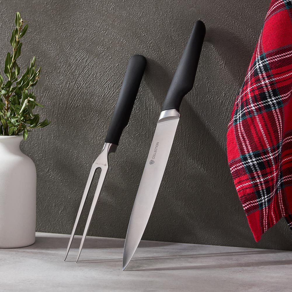 Набор BY Pevek состоит из двух предметов, необходимых на кухне: ножа и вилки для мяса. Нож кухонный универсальный 21,5 см подходит для нарезки любых продуктов: овощей, фруктов, мяса, рыбы, сыров и деликатесов. Тонкое лезвие из высококачественной нержавеющей стали не подвержено коррозии, долго держит заточку. Металлическая вилка с крупными острыми зубцами незаменима при приготовлении стейков и отбивных. С этим предметом значительно легче переворачивать и извлекать куски мяса и рыбы.