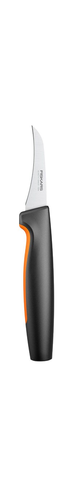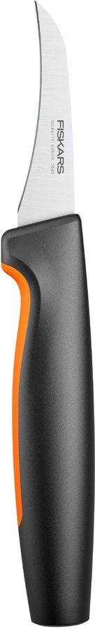 Нож для овощей с изогнутым лезвием Fiskars® Functional Form™ разработан для легкой ежедневной работы и прост в уходе Отлично подходит для чистки круглых корнеплодов Прочное лезвие из японской нержавеющей стали Длина лезвия 68 мм Твердость стали HRC 52 Высокая производительность резки.
