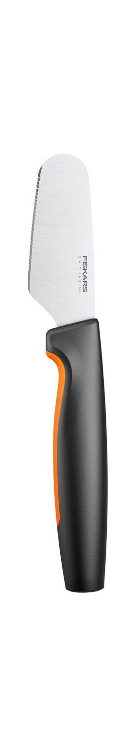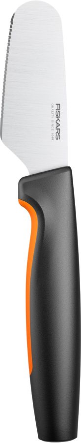 "Нож для масла Fiskars® Functional Form™ разработан для легкой ежедневной работы и прост в уходе Отлично подходит для намазывания масла и мягких сыров Прочное лезвие из японской нержавеющей стали Длина лезвия 78 мм Твердость стали HRC 52