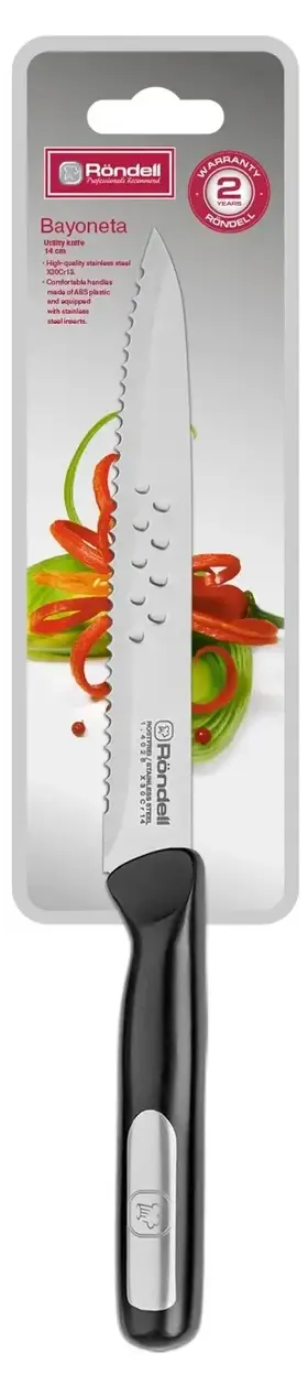 Материал клинка: высококачественная нержавеющая сталь X30Cr14. Материал рукоятки: комбинированная: ударопрочный пластик и нержавеющая сталь. Преимущества: лезвия ножей с эффектом anti-stick - продукты не прилипают к лезвию в процессе их нарезки. Использование: не подходит для посудомоечной машины.