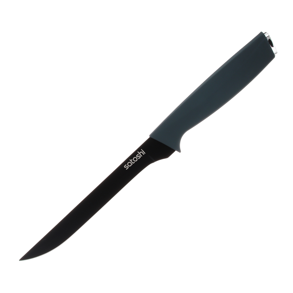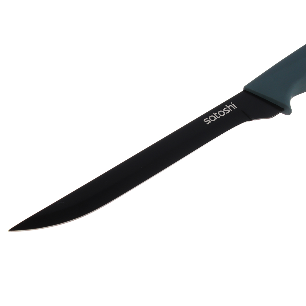 Нож кухонный 15 см SATOSHI «Орис» с лезвием из нержавеющей стали и антиналипающим покрытием станет вашим главным помощником на кухне. Имеет эргономичную рукоять с покрытием Soft-Touch, благодаря чему изделие не выскальзывает из рук и не вызывает усталости даже при длительной работе по нарезке. Острое лезвие с легкостью разрезает овощи, фрукты, мясные деликатесы и другие продукты на тонкие ломтики. Изделие долго держит заточку, не боится длительного контакта с кислотами, легко моется. Имеет строгий стильный дизайн.