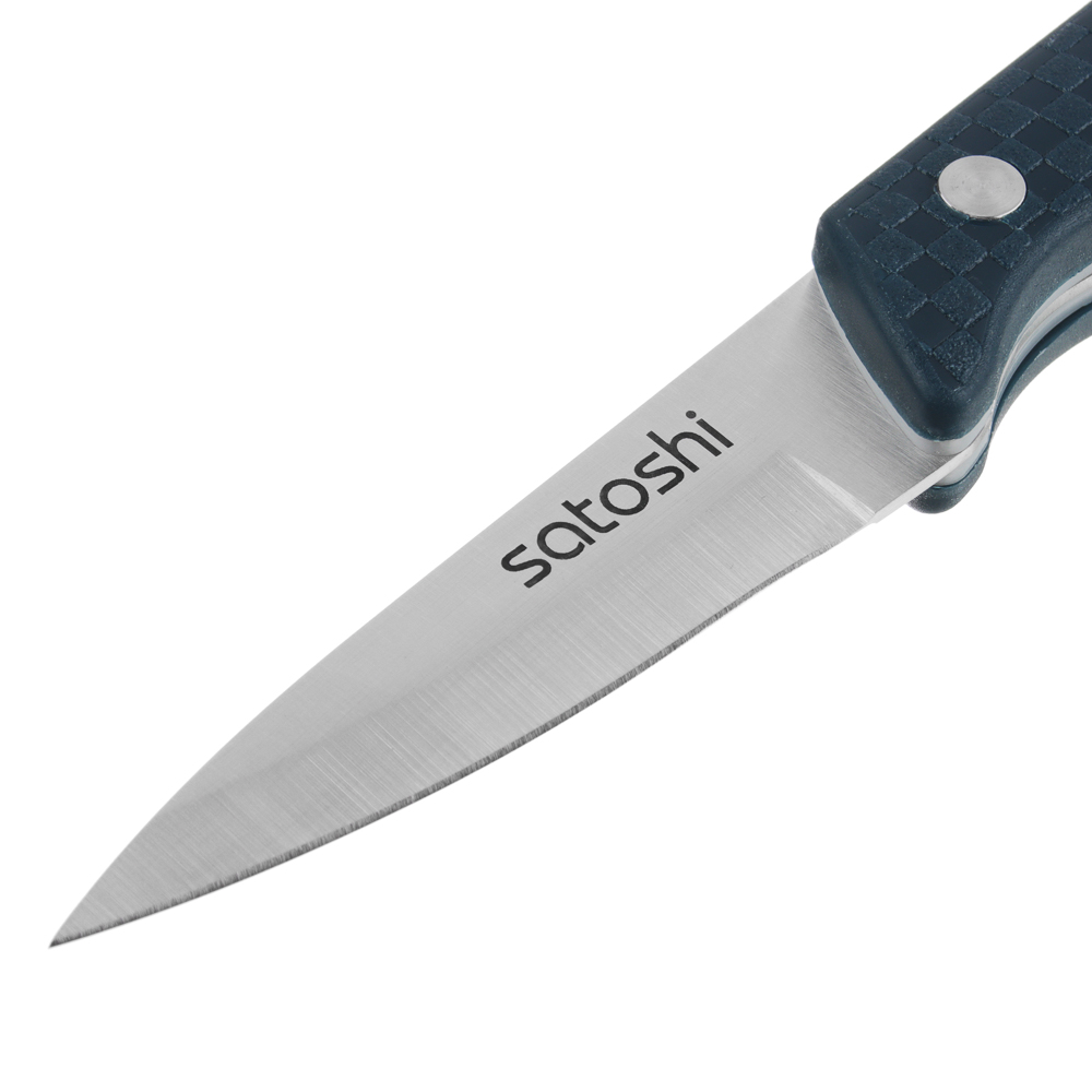 Нож кухонный овощной SATOSHI «Ривьера» 9 см из нержавеющей стали – незаменимый инструмент на каждой кухне. Маленький нож удобен для нарезки и чистки овощей и фруктов от кожуры. Рукоять с покрытием софт-тач удобно фиксируется в руке, не выскальзывая в процессе использования. Сталь долго держит заточку, не боится коррозии.