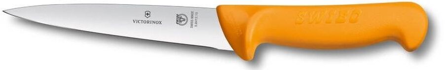 Классический кухонный нож с удобной ручкой и прямым коротким лезвием, слегка поднятым к верху.