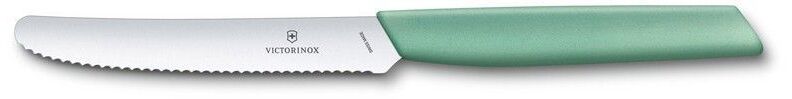 Нож столовый VICTORINOX Swiss Modern, волнистое лезвие из нержавеющей стали 11 см с закруглённым кончиком, рукоять из синтетического материала мятно-зелёного цвета