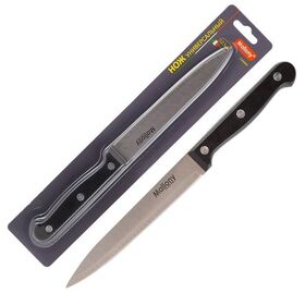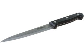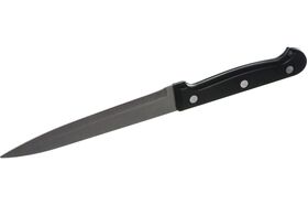 Нож с пластиковой рукояткой подходит для эксплуатации в быту, а также в местах общественного питания.