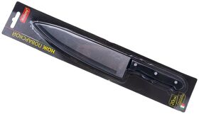Нож с бакелитовой рукояткой подойдет для эксплуатации в быту, на кухне, в местах общественного питания.