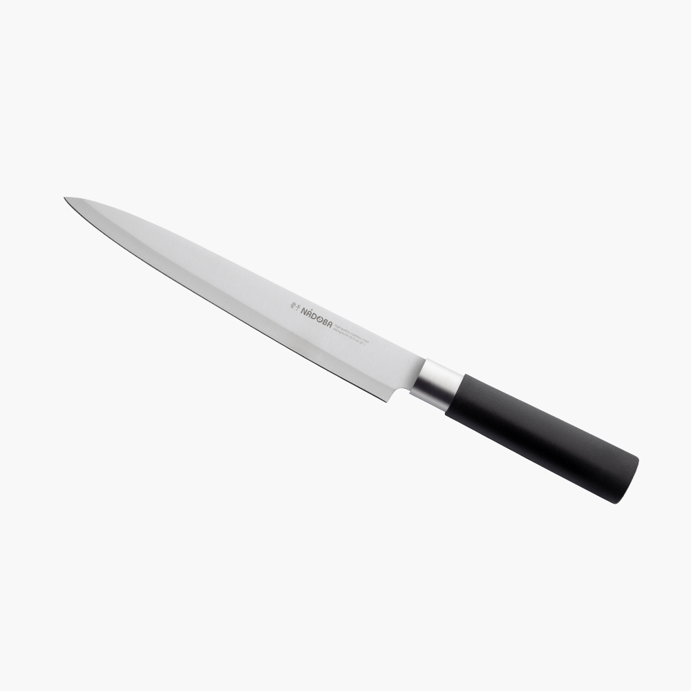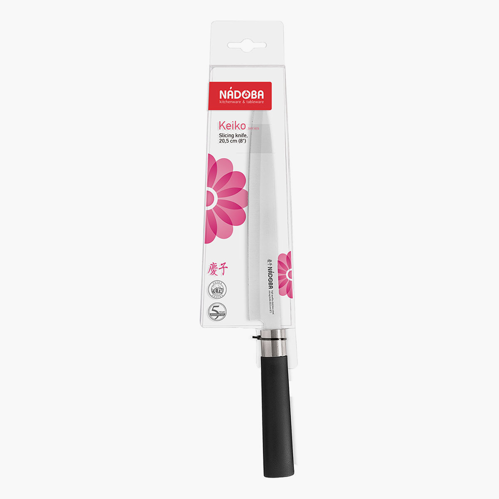 Традиционные японские ножи серии Keiko изготовлены из высококачественной нержавеющей стали, их лезвия остаются острыми долгое время. Ручки ножей выполнены из высокопрочного пластика и нержавеющей стали. Универсальный блок набора ножей изготовлен из керамики. Он позволяет хранить ножи в различном количестве и в произвольном порядке. Пластиковые волокна не тупят ножи и легко моются