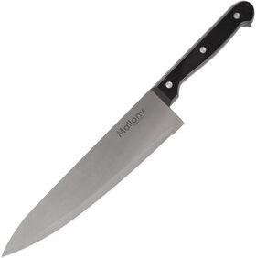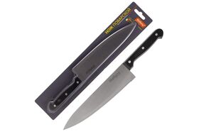 Нож с пластиковой рукояткой поварской, изготовлен из прочной стали. Толщина клинка составляет 1.5 мм.