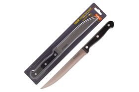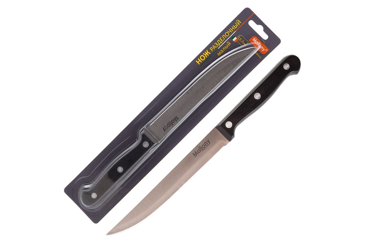 Нож с пластиковой рукояткой подойдет для бытовой и профессиональной эксплуатации. Нож изготовлен из прочной стали. Толщина клинка составляет 1.15 мм. Нож оснащен прочной пластиковой ручкой.