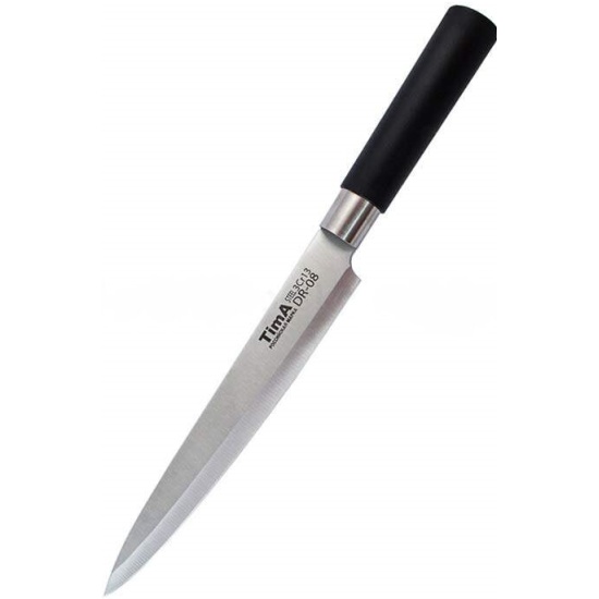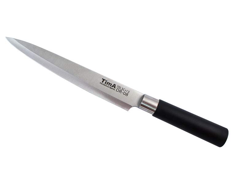 Нож разделочный серии DRAGON изготовлен из высококачественной ножевой стали 3Cr13 в японском стиле. Твердость стали примерно 57 HRC. Ручка цилиндрической формы изготовлена из матового полипропилена и не скользит даже в мокрой руке.