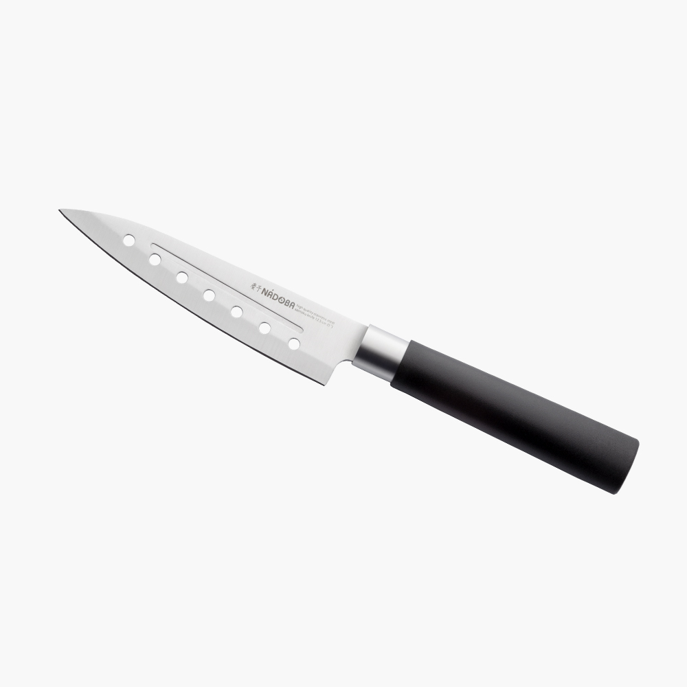 Традиционные японские ножи серии Keiko изготовлены из высококачественной нержавеющей стали, их лезвия остаются острыми долгое время. Ручки ножей выполнены из высокопрочного пластика и нержавеющей стали. Универсальный блок набора ножей изготовлен из керамики. Он позволяет хранить ножи в различном количестве и в произвольном порядке. Пластиковые волокна не тупят ножи и легко моются.