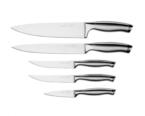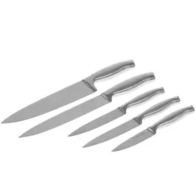 Набор ножей – это 5 удобных приспособлений для работы с разными продуктами. Благодаря эргономичному дизайну шеф-нож станет главным помощником. Слайсер аккуратно нарежет продукты тонкими ломтиками для красивой сервировки. Овощной и универсальный ножи удобны для работы с фруктами, овощами и неплотными продуктами.