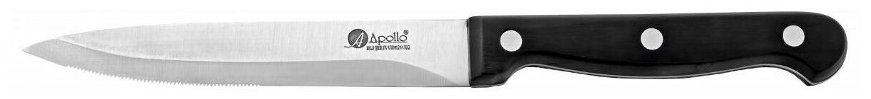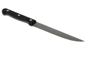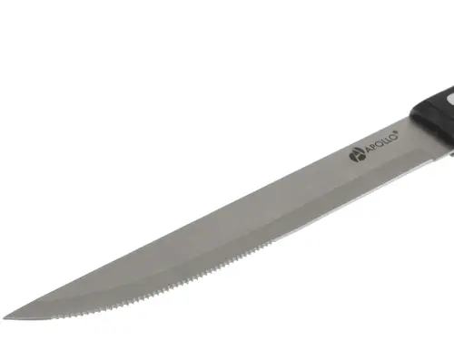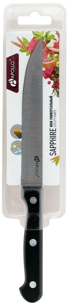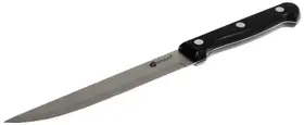 Режущая кромка с серрейторной заточкой обеспечивает хорошую резку продуктов различной твердости. Изготовленное из нержавеющей стали лезвие отличается долговечностью и прочностью.