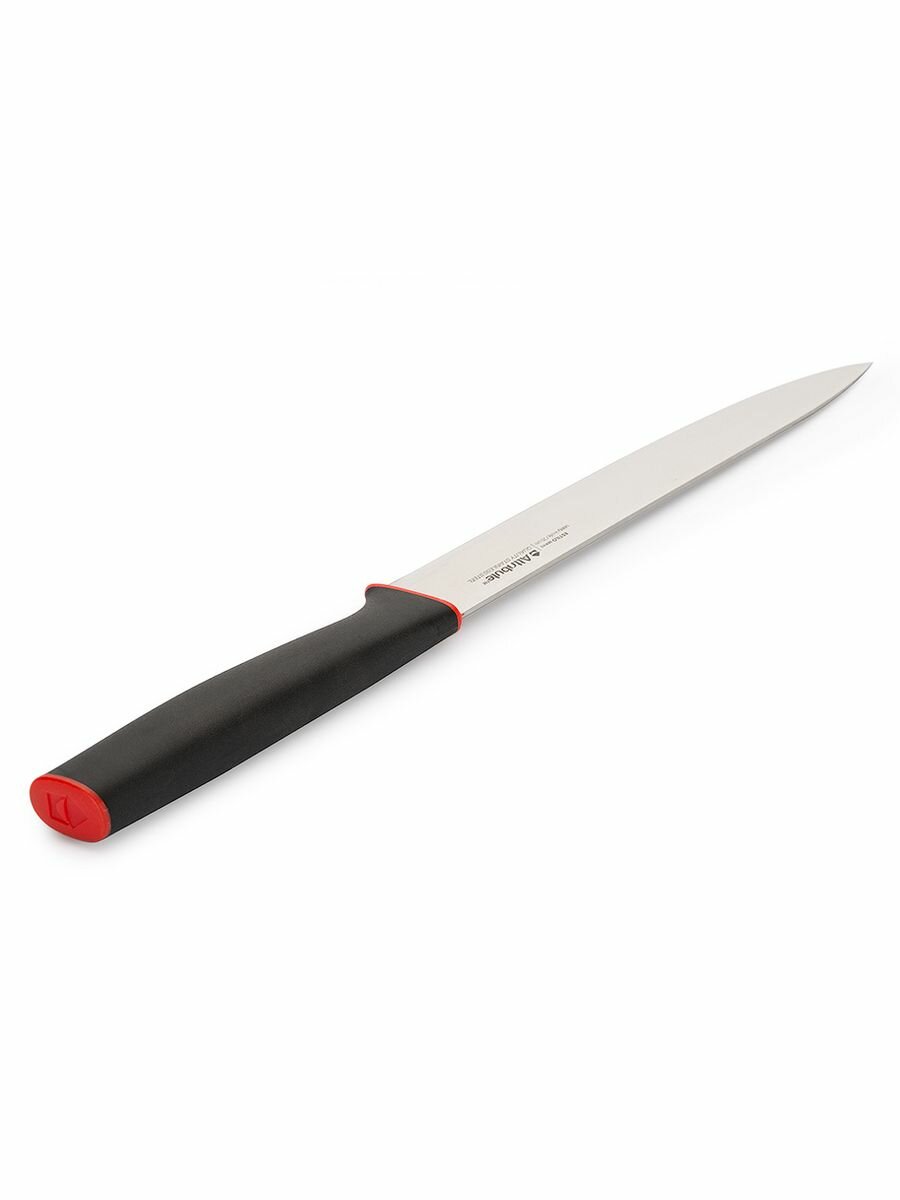 Нож отлично подойдет для ежедневного использования. Лезвие выполнено из высококачественной нержавеющей стали. Благодаря уникальной формуле стали и качеству ее обработки, лезвие имеет высокий показатель твердости, что позволяет ножу долго сохранять острую заточку, а также повторно его затачивать. Эргономичная ручка ножа изготовлена из высококачественного пластика.