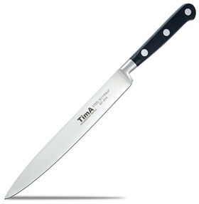 Ручка ножа выполнена в классическом стиле и изготовлена из полипропилена. Материал ручки приятен на ощупь, не скользит в руках, обладает высокой стойкостью к маслам, щелочам и кислотам, которые на кухне не редкость. Устойчив к загрязнениям, легко моется и не оставляет на поверхности следов от пальцев. Нож такого типа не имеет особых отличительных признаков. Он предназначен для нарезки свеклы, моркови, картофеля и других овощей, несложных в разделке.