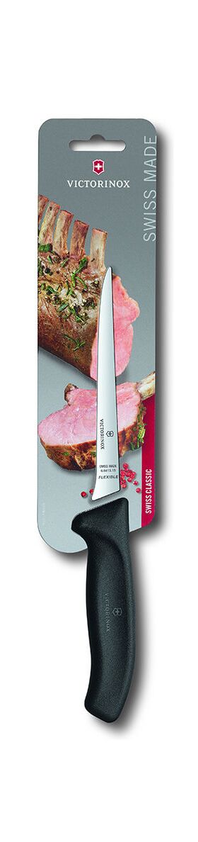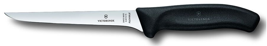Нож обвалочный с гибким лезвием из нержавеющей стали 15 см. Рукоять из термопластика TPE чёрного цвета. Можно мыть в посудомоечной машине.