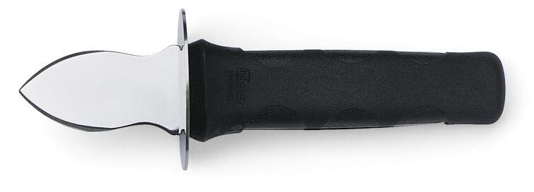 Профессиональный специализированный нож для устриц с упором для рук. Он предназначен для обеспечения безопасности рук при работе с моллюсками.