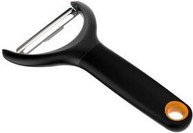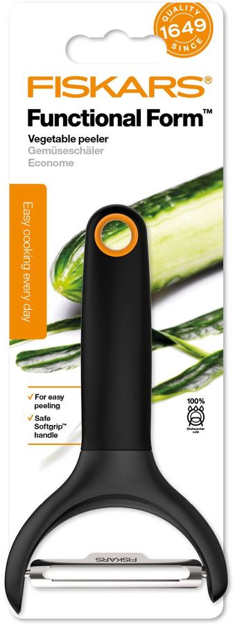 Подходит для очистки кожуры овощей, например огурцов и моркови. Острое лезвие из нержавеющей стали. Специальное покрытие на лезвии предотвращает налипание. Удобно чистить в двух направлениях (вперед-назад). Можно использовать в качестве овощерезки. Можно мыь в посудомоечной машине.