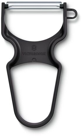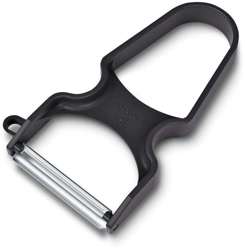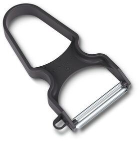 Овощечистка выполнена из пластика и нержавеющей стали высокого качества. Предназначена для снятия кожуры с овощей или фруктов. Лезвие прямое.
