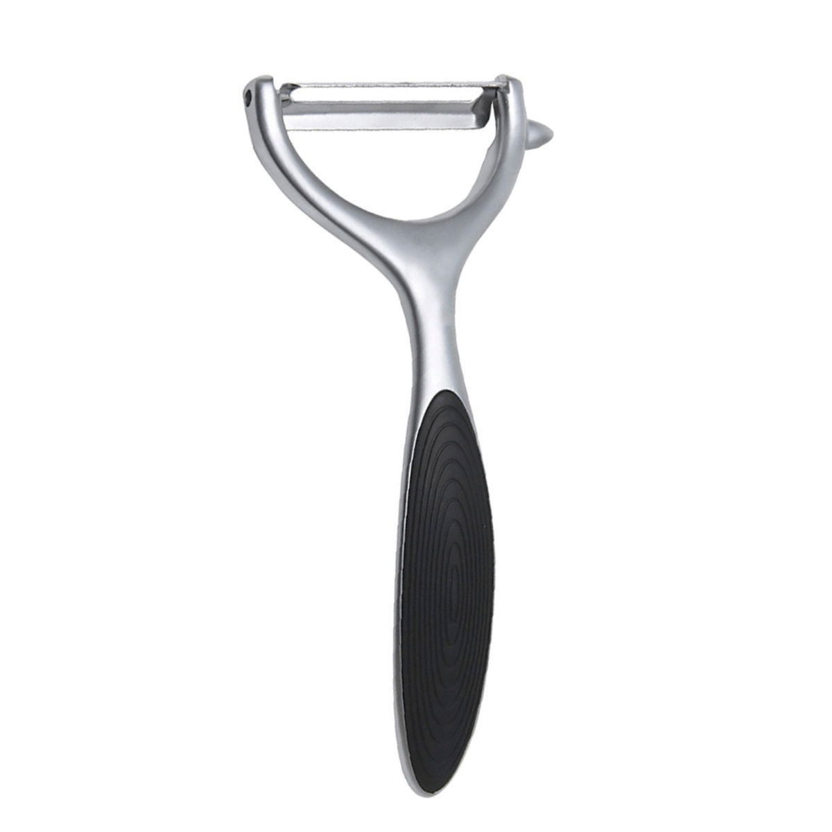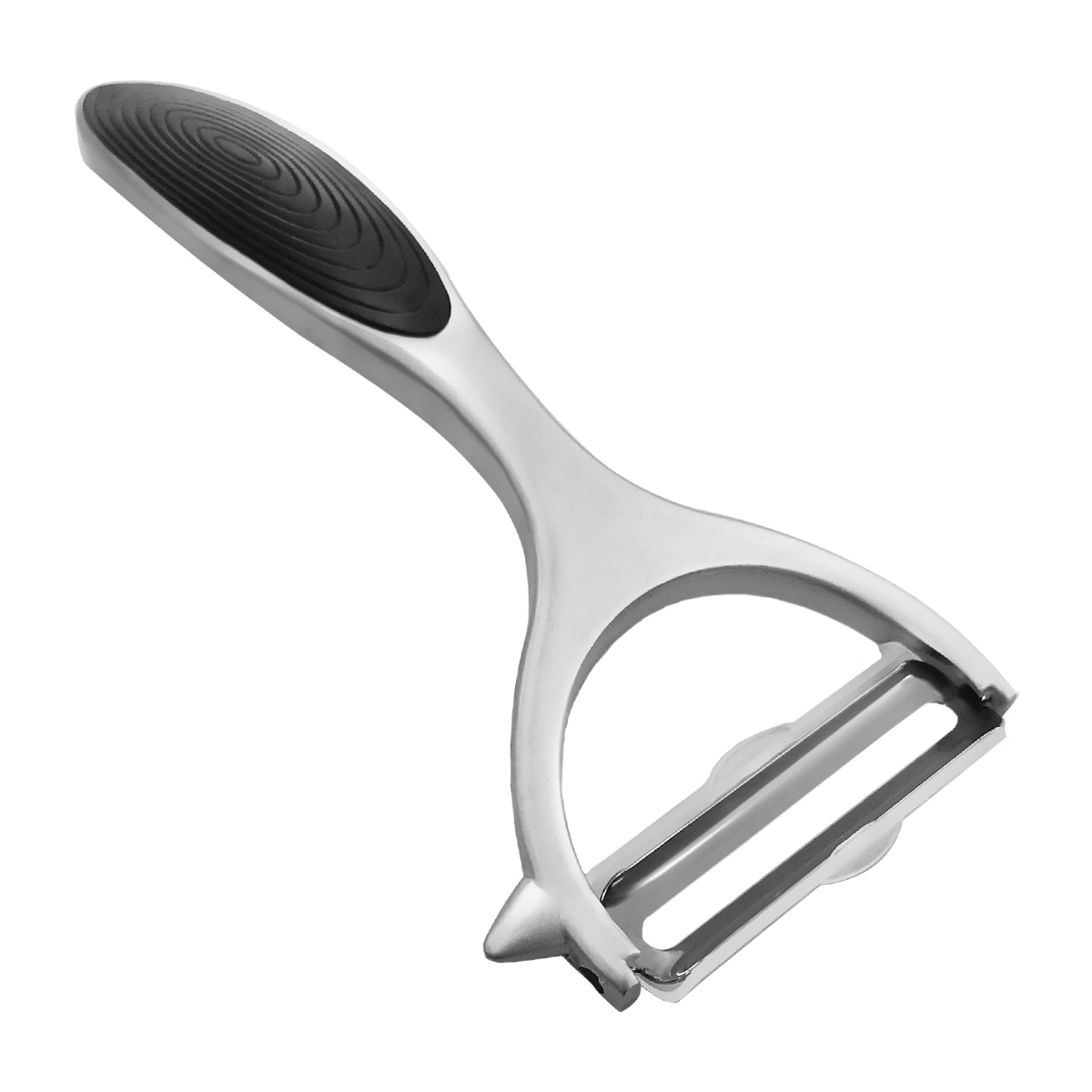 Овощечистка LARA LR07-43 имеет прорезиненную ручку. Рабочие части изготовлены из нержавеющей стали.