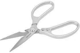 Благодаря зазубренным лезвиям и наличию открывашки для бутылок, ножницы идеально подходят для разделки рыбы и мяса птицы, нарезки овощей и зелени, а также справятся с резкой бумаги, картона и текстильных материалов.