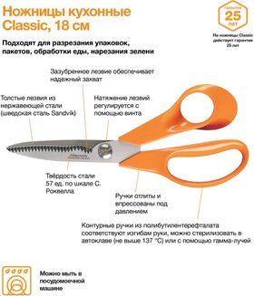 Ножницы Fiskars Classic давно стали классикой дизайна, которая сочетает в себе превосходное качество и производительность. Подходят для любых задач. Изготовлены из высококачественных материалов.