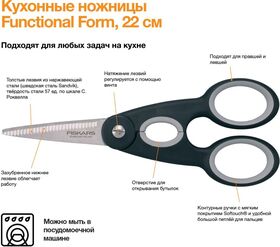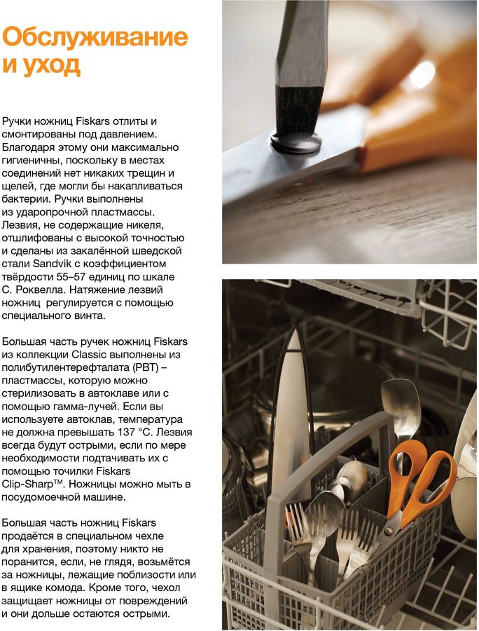 Можно мыть в посудомоечной машине. Мягкое покрытие Softouch. Твёрдость 57 ед. по шкале С. Роквелла