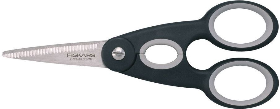 Ножницы с прочным острым лезвием и не выскальзывающей безопасной ручкой с мягким захватом. Зазубренное нижнее лезвие облегчает работу. Натяжение лезвий регулируется с помощью винта.