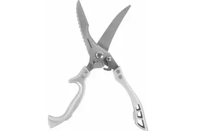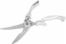 Оснащенные фиксатором для безопасного хранения и зазубренным ребром для чистки рыбы, они станут незаменимыми кухонными принадлежностями в вашем доме. Эти ножницы справляются не только с кухонными задачами, но и подходят для резки проводов и подрезки растений, делая их универсальной кухонной утварью и полезным аксессуаром для кухни.