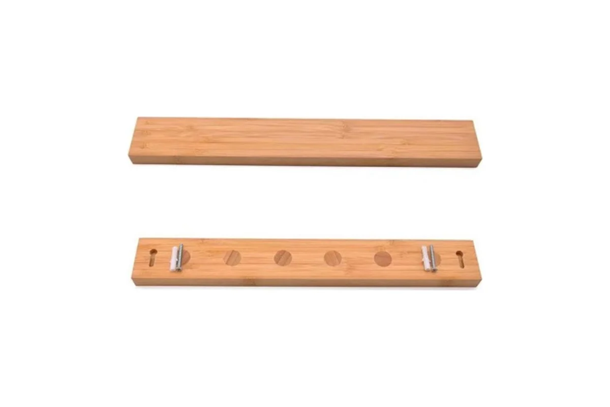 Технические характеристики Вид держатель для ножей Материал бамбук Наполнитель нет Кол-во ножей 6 Цвет бежевый Вес нетто 0.579 кг Габариты без упаковки 380х50х20 мм