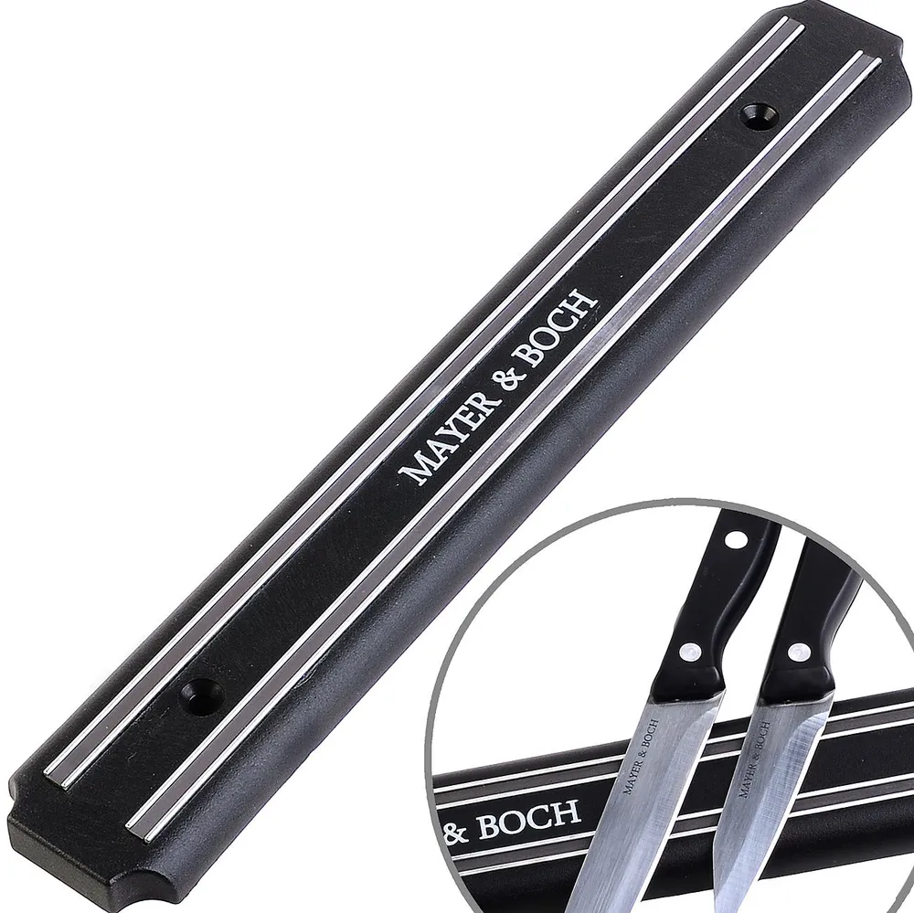 Магнитный держатель MAYER&BOCH - это удобное приспособление, которое непременно пригодится на вашей кухне. Он выполнен из металла и пластика и для удобства крепится к стене при помощи двух шурупов с дюбелями (в комплекте). Магнитный держатель предохранит ваш кухонный нож от царапин и контактов с остальными ножами и столовыми приборами. Кухонные ножи всегда будут остры и пригодны для любых нагрузок. Магнитный держатель - это стильный аксессуар для вашей кухни.